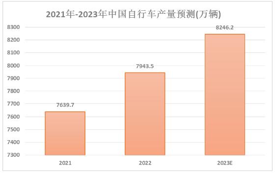 2021年我國自行車產(chǎn)量為7639.7萬輛,2022年我國自行車產(chǎn)量為7943.5萬輛,據(jù)中研普華產(chǎn)業(yè)院研究報告《2024-2029年自行車行業(yè)并購重組機(jī)會及投融資戰(zhàn)略研究咨詢報告》預(yù)計2023年產(chǎn)量將達(dá)到8246.2萬輛。
