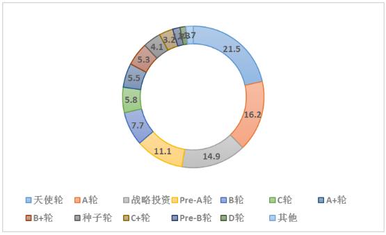 截至2023年11月24日,中國人工智能融資事件主要以早期投資為主,其中天使輪占比最多,達21.5%。A輪、戰略投資、Pre-A輪、B輪,占比分別為16.2%、14.9%、11.1%、7.7%。