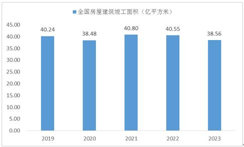 國家統計局的數據顯示,2019-2023年,我國房屋建筑竣工面積有所波動,但總體保持在38億平方米以上。2023年,我國房屋建筑竣工面積達到38.56億平方米。