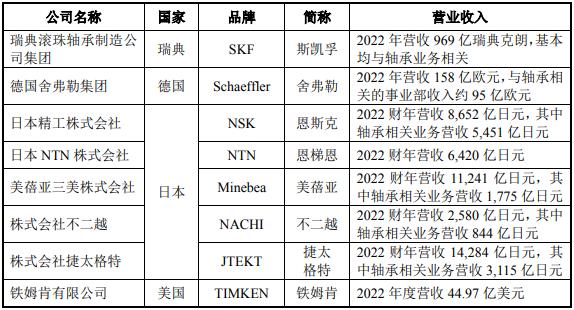 圖表:全球八大軸承公司的收入規模