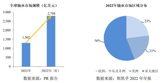 圖表:全球軸承市場規模和區域分布