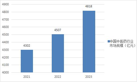 圖表:2021-2023年中國(guó)中醫(yī)藥行業(yè)市場(chǎng)規(guī)模(單位:億元)