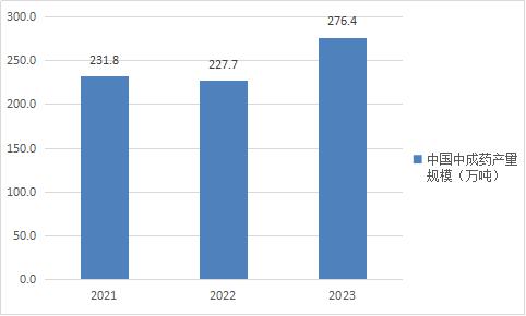 圖表:2021-2023年中國(guó)中成藥產(chǎn)量規(guī)模(單位:萬噸)