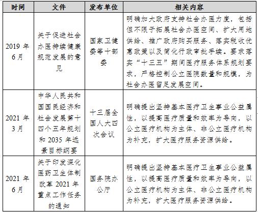 醫(yī)療衛(wèi)生是服務(wù)于國計民生的大事,醫(yī)療衛(wèi)生事業(yè)的發(fā)展也是提高國家人民幸福指數(shù)的關(guān)鍵指標(biāo)。近年來,為了增加醫(yī)療服務(wù)資源供給,解決醫(yī)療資源分配不合理問題,我國醫(yī)藥衛(wèi)生體制改革不斷深化。2016年中共中央、國務(wù)院在《“健康中國2030”規(guī)劃綱要》中提出要進(jìn)一步優(yōu)化政策環(huán)境,推進(jìn)和實現(xiàn)非營利性民營醫(yī)院與公立醫(yī)院同等待遇。2021年十三屆全國人大四次會議通過的《中華人民共和國國民經(jīng)濟(jì)和社會發(fā)展第十四個五年規(guī)劃和2035年遠(yuǎn)景目標(biāo)綱要》明確提出堅持基本醫(yī)藥衛(wèi)生事業(yè)公益屬性,以提高醫(yī)療質(zhì)量和效率為導(dǎo)向,以公立醫(yī)療機(jī)構(gòu)為主體、非公立醫(yī)療機(jī)構(gòu)為補(bǔ)充,擴(kuò)大醫(yī)療服務(wù)資源供給。“十四五”時期醫(yī)療衛(wèi)生領(lǐng)域的一系列政策為推動公立醫(yī)院高質(zhì)量發(fā)展、完善公共衛(wèi)生體系、深化醫(yī)藥衛(wèi)生體制改革、促進(jìn)優(yōu)質(zhì)醫(yī)療資源均衡布局等工作指明了方向。
