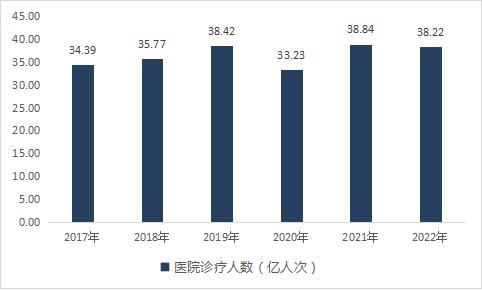 醫(yī)療需求促使醫(yī)療服務(wù)市場規(guī)模與綜合性醫(yī)院收入規(guī)模不斷擴(kuò)大。根據(jù)衛(wèi)健委,全國醫(yī)院診療人次從2017年的34.39億增長到2022年的38.22億人次;全國綜合醫(yī)院平均收入從2017年的3.9億元增長到2021年的5.4億元。