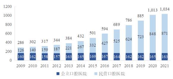 圖表:2009-2021年我國口腔醫院數量(單位:家)