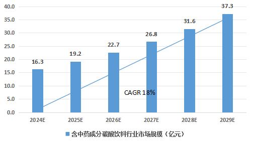 預(yù)計2024-2029年期間,中國含中藥成分碳酸飲料行業(yè)市場規(guī)模有望以18%的年復(fù)合增長率增長,預(yù)計至2029年底,中國含中藥成分碳酸飲料行業(yè)市場規(guī)模有望增長至為37.3億元。