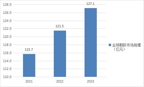 圖表:2021-2023年全球鵝肝行業市場規模(單位:億元)