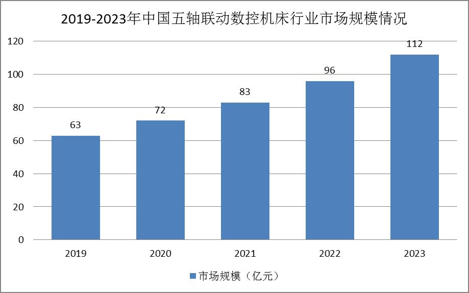 圖表:2019-2023年中國(guó)五軸聯(lián)動(dòng)數(shù)控機(jī)床行業(yè)市場(chǎng)規(guī)模情況