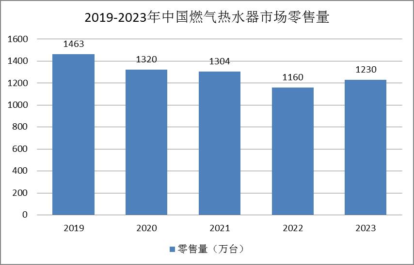圖表:2019-2023年中國(guó)燃?xì)鉄崴魇袌?chǎng)零售額