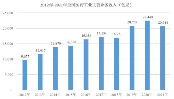圖表:2012年-2021年全國醫(yī)藥工業(yè)主營業(yè)務(wù)收入(億元)