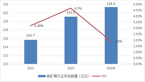 根據智研咨詢相關數據顯示,2022-2024年期間,中國巖礦棉行業市場規模呈現出持續增長態勢,截至2023年底,中國巖礦棉行業市場規模增長至為121.1億元,同比2022年期間增長了4.7%。