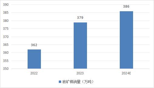 圖表:2022-2024年中國巖礦棉行業銷量情況