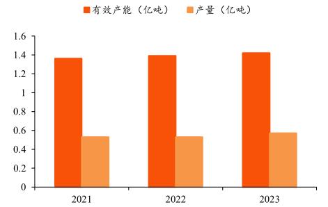 圖表:國內復合肥有效產能及產量變化