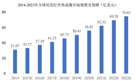 2014-2023年全球民用紅外熱成像市場規模及預測(億美元)