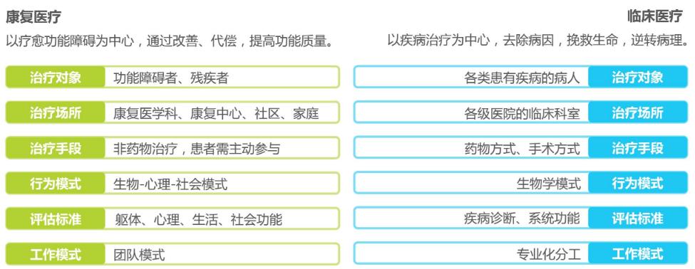 圖表:康復(fù)醫(yī)療和臨床醫(yī)療的對(duì)比分析