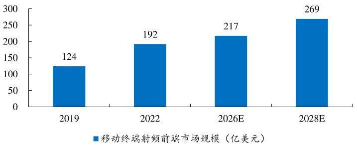 圖表:移動終端射頻前端市場規模穩步增長(億美元)