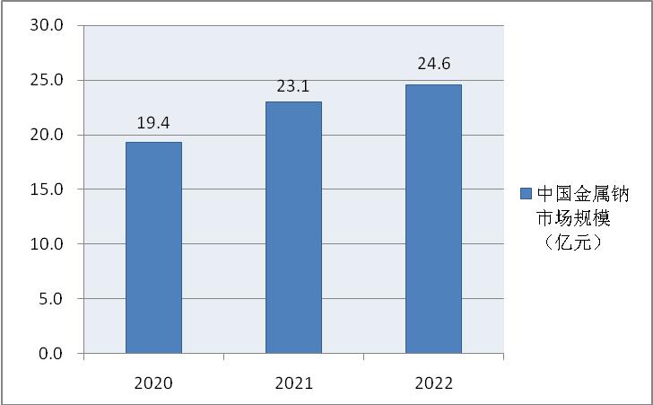 圖表:2020-2022年金屬鈉行業市場規模分析