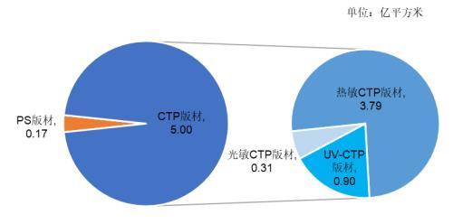 從產品結構來看,2010 年以前我國膠印版材主要以 PS 版材為主,隨著 CTP技術的快速發展,CTP 版材的市場份額不斷上升,目前我國膠印版材市場以 CTP版材為主,2021 年其銷量為 5.00 億平方米,占膠印版材銷量占比達到 96.68%。CTP 版材市場中,熱敏 CTP 版材與 UV-CTP 版材占據主要地位,2021 年其銷量分別為3.79億平方米與0.90億平方米,占膠印版材銷量的比重分別為 73.26%與 17.48%。