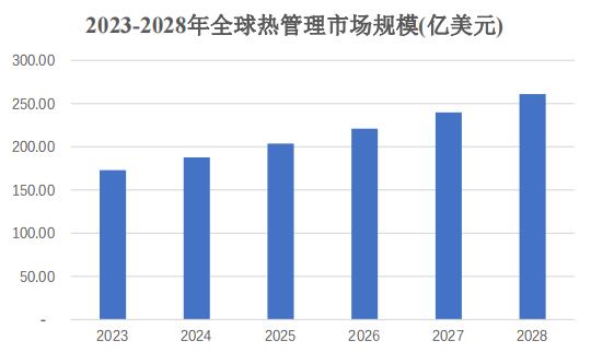 根據(jù)BCCResearch于2023年發(fā)布的研究報告,2023-2028年,全球熱管理市場規(guī)模復合增長率為8.5%,市場規(guī)模將從2023年的173億美元增加至2028年的261億美元,市場空間廣闊。