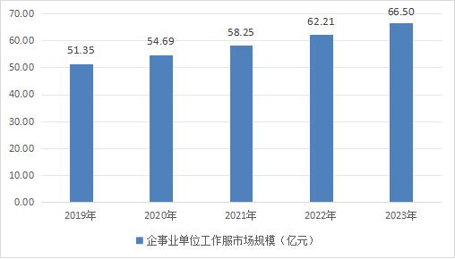2019年企事業單位工作服市場規模為51.35億元,至2023年,企事業單位工作服市場規模達到66.5億元。