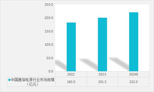 圖表:2022-2024年中國通信電源行業市場規模(單位:億元)