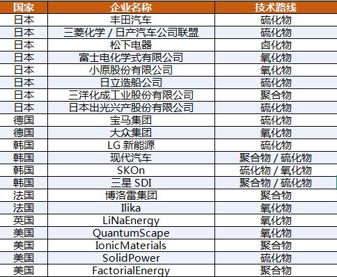 圖表:國(guó)外典型企業(yè)固態(tài)電池技術(shù)路線(xiàn)