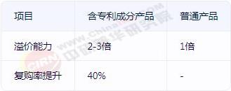 圖2:含專利成分面部護(hù)理品與普通產(chǎn)品對(duì)比