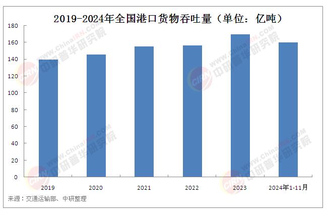 中國港口碼頭行業作為國家經濟命脈的重要支撐,承載著全球貿易流通與區域經濟發展的雙重使命。自改革開放以來,中國港口吞吐量持續攀升。根據交通運輸部公布的數據,2024年前11個月,全國港口累計完成貨物吞吐量160.4億噸,同比增長3.4%,其中外貿吞吐量49.6億噸,同比增長7.3%,完成集裝箱吞吐量3.04億標箱,同比增長7.3%。