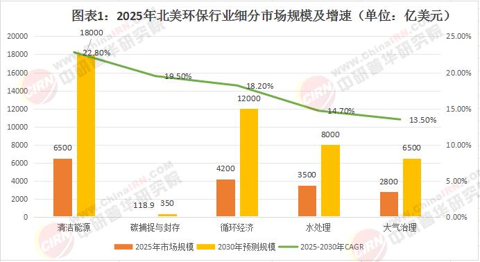 圖表1:2025年北美環(huán)保行業(yè)細(xì)分市場規(guī)模及增速(單位:億美元)
